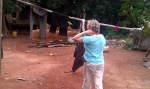 Ich möchte eigentlich nur raus aus der Hütte. Es ist mir unangenehm, hier unerwartet eingedrungen zu sein und die junge Frau verjagt zu haben. Also verlassen wir die Hütte, wobei ich mich im Stillen wundere, wo die Familie kocht, badet und ihre Notdurft verrichtet.