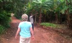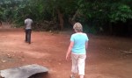 Da die beiden mir die Gegend zeigen wollen, marschieren wir los, Bismark vorneweg, ich in der Mitte und Kofi als letztes. Noch im Dorf treffen wir auf eine Gruppe von Männern, die uns herzlich begrüßt. Mit einem von ihnen tausche ich ein paar nette Worte und Höflichkeitsfloskeln aus.
